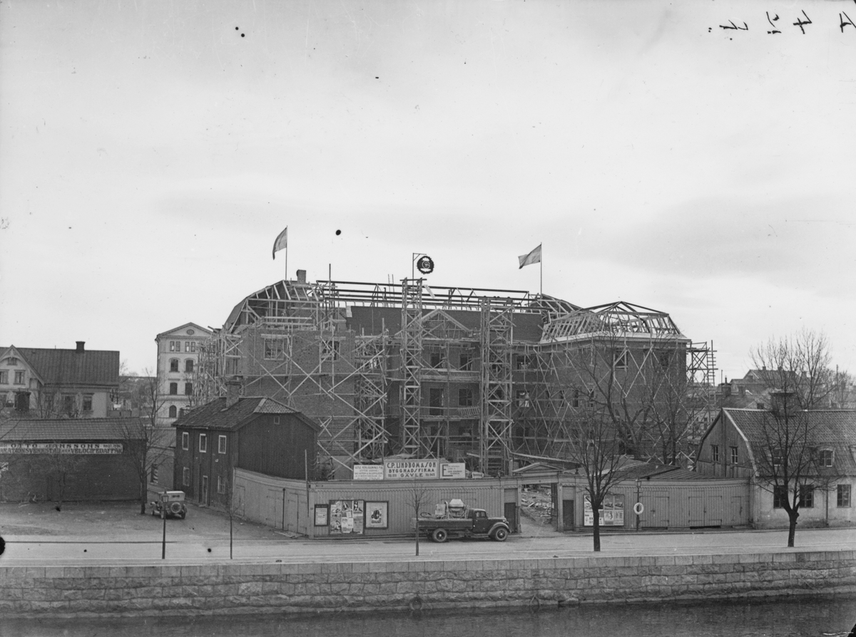 Taklagsfest vid Gävle Museum under byggnadsskedet 1938-40.