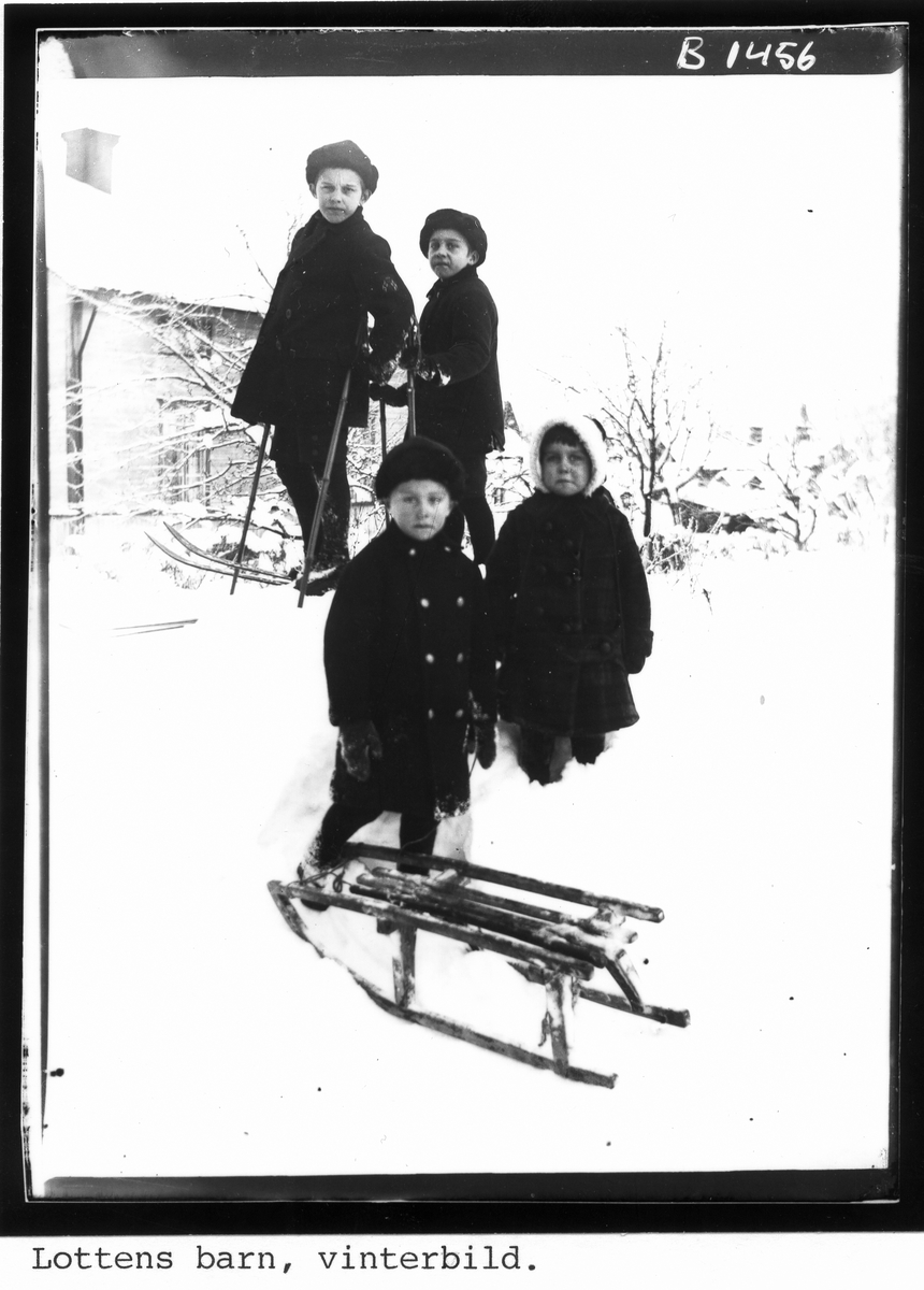 Vinterbild, Lottens barn: Oskar, Sigvard, Ture och Sigrid Sundgren.