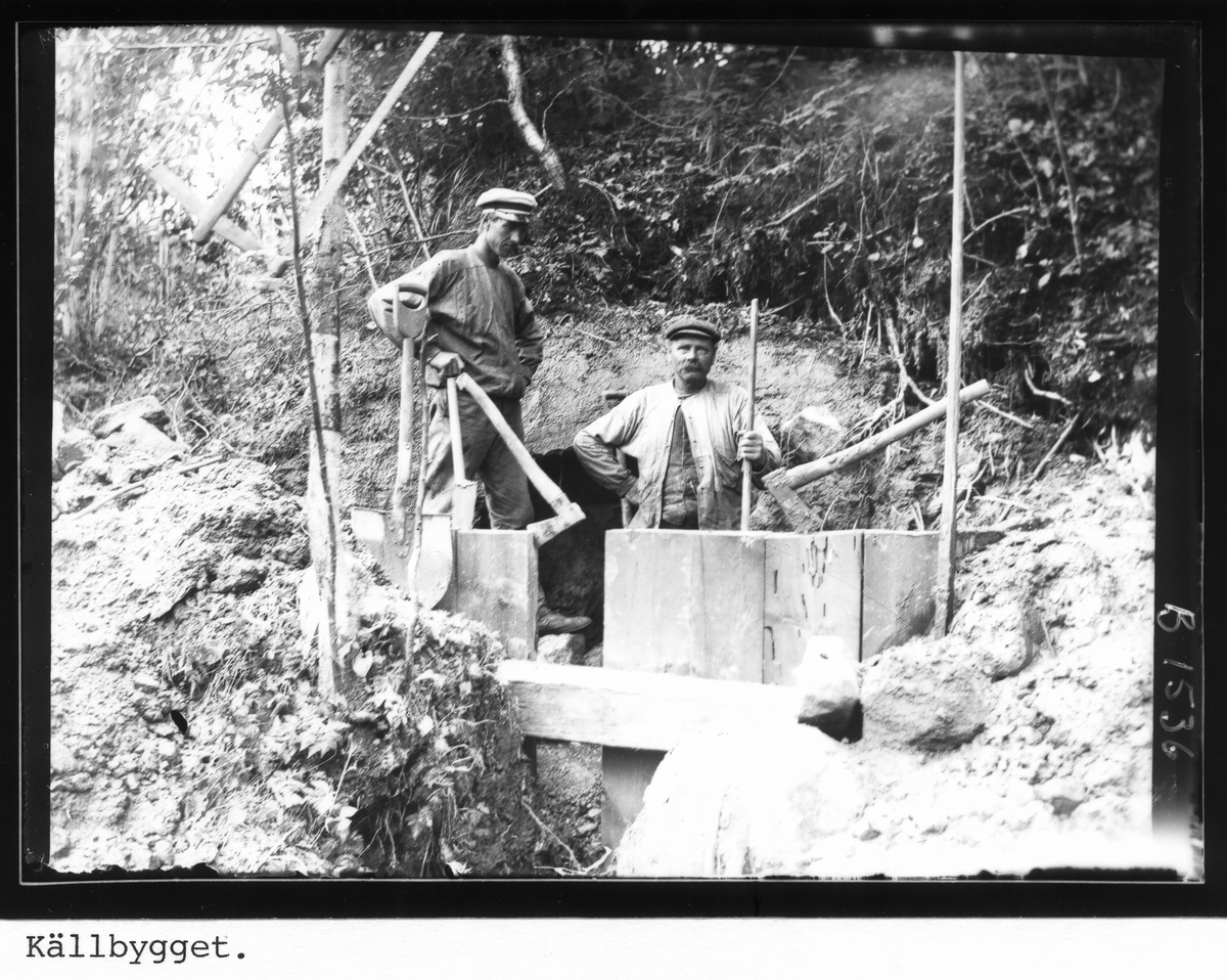 Källbygget. Till vänster Ivar Ellström och till höger Karl-Bernhard Svedlund.