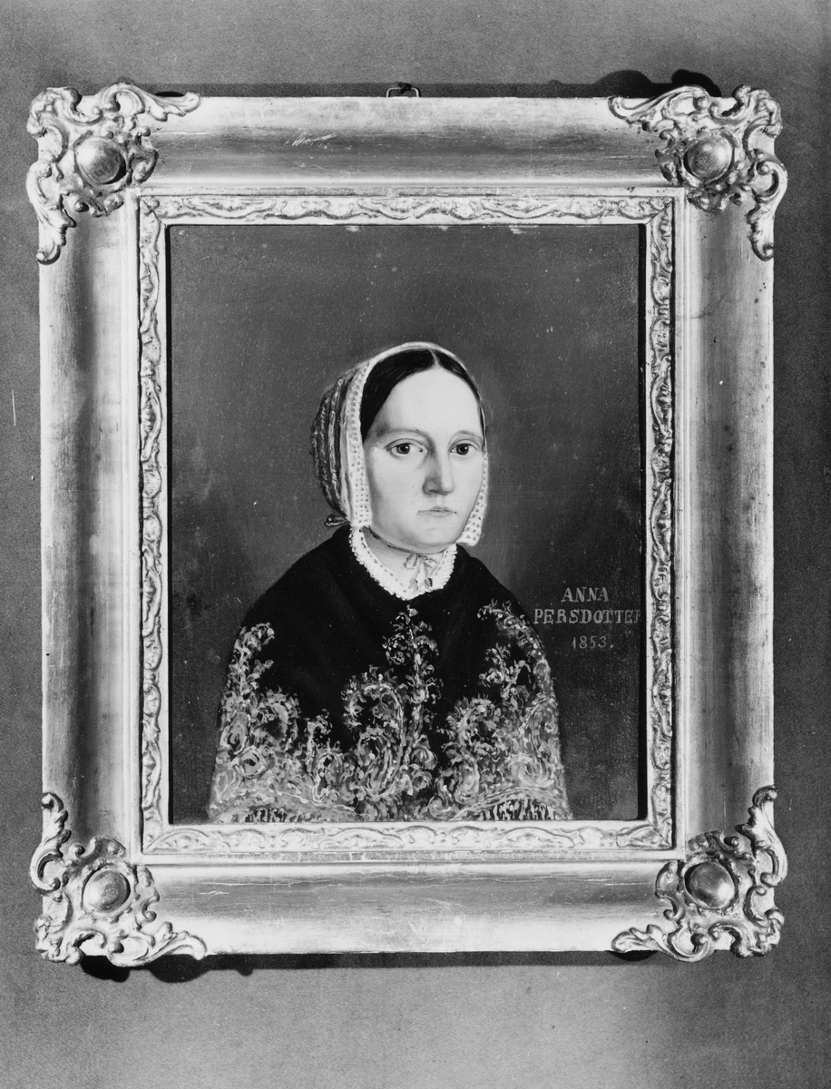 Målning av okänd konstnär från 1853: Anna Persdotter, Jons, Västbyggeby, Valbo. . (se även Make?? Per Jansson bild C 510)