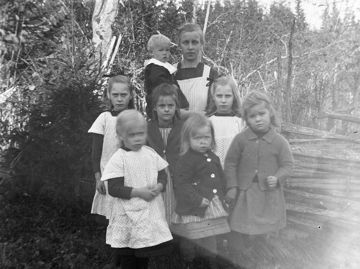 Titel: En kvinna med barn i trädgården