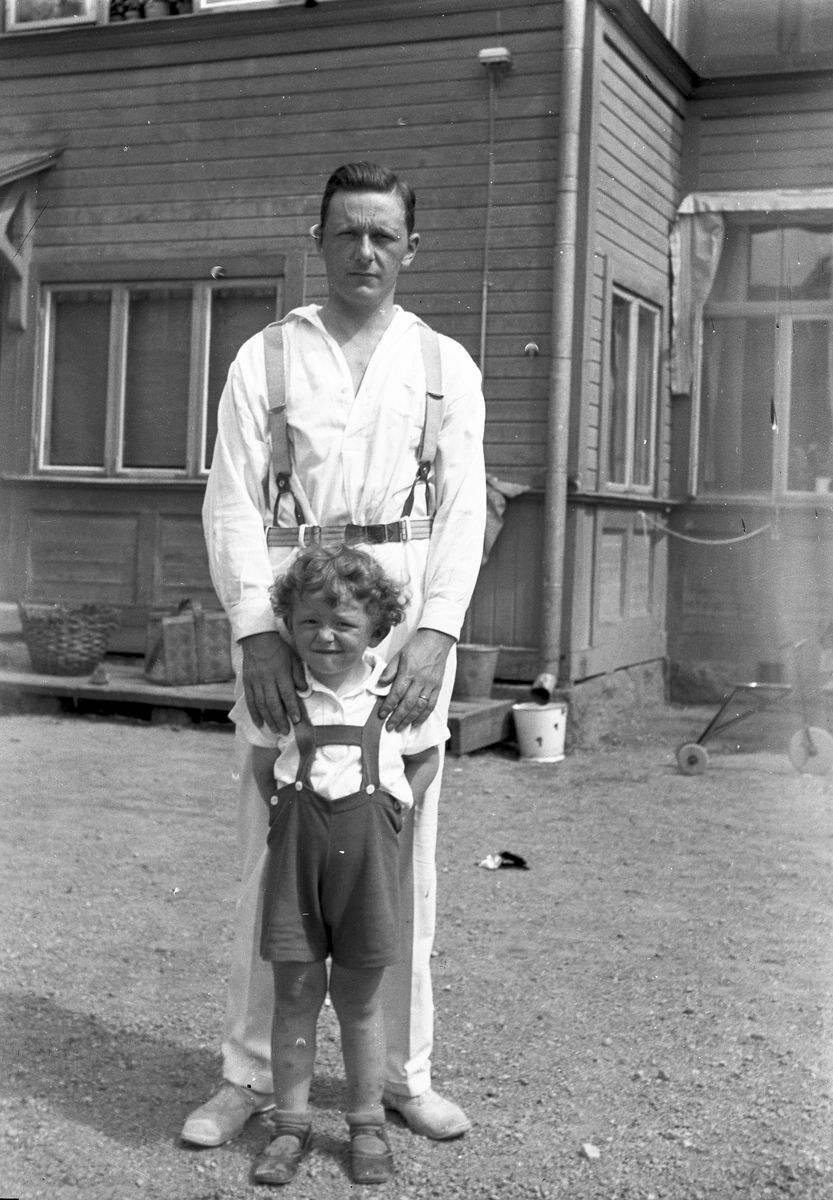 Far och son ute på gårdsplan