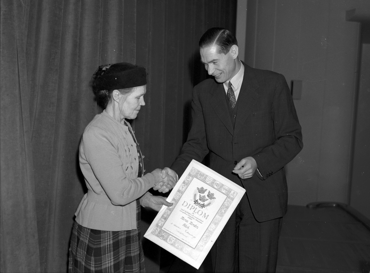 Mjölkpropaganda, diplomutdelning på Folkets Hus. 18 november 1950.