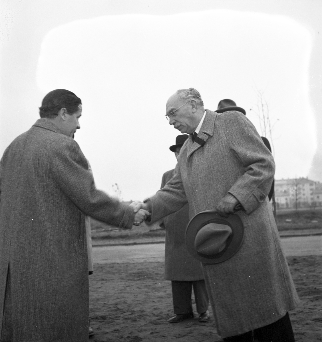 Titel: Gävle stads Sparbank, plantering av ek vid Nynäs. 31 oktober 1950.