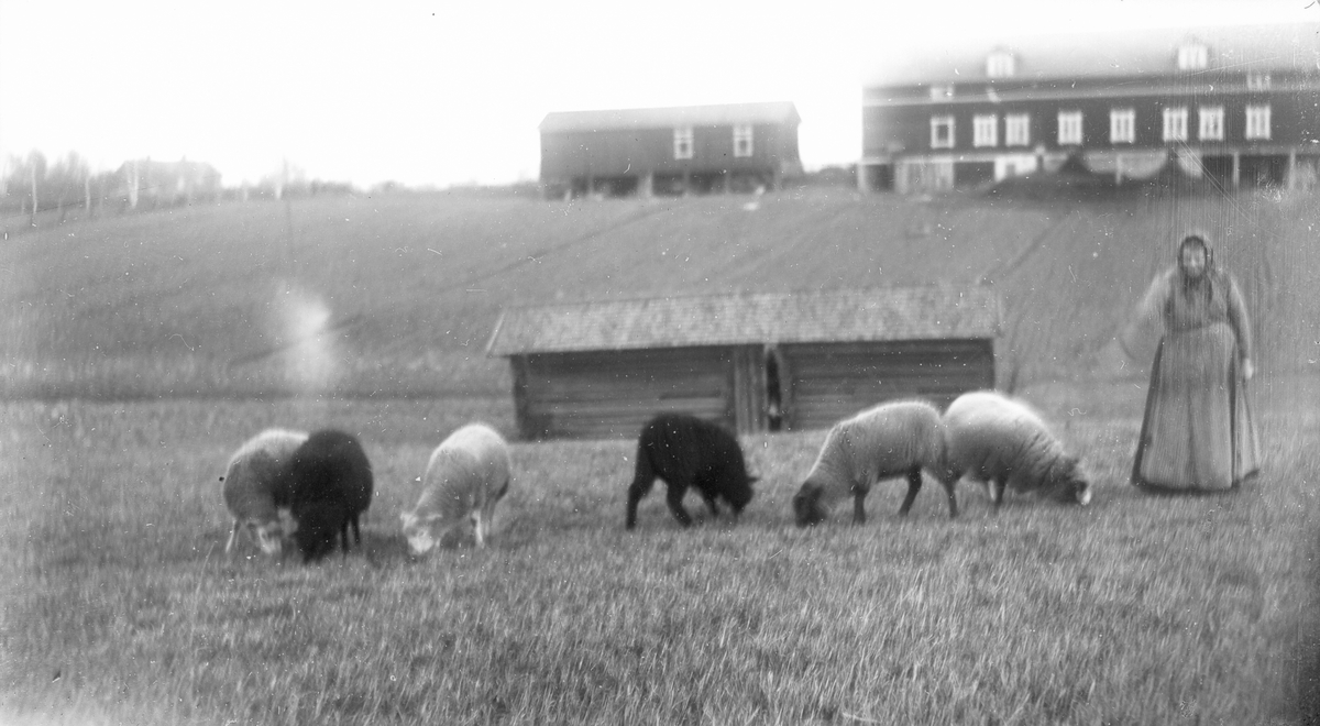 "Skinnar-Marta", Marta Hansson, född 1862, Lenninge 6:14, med får.