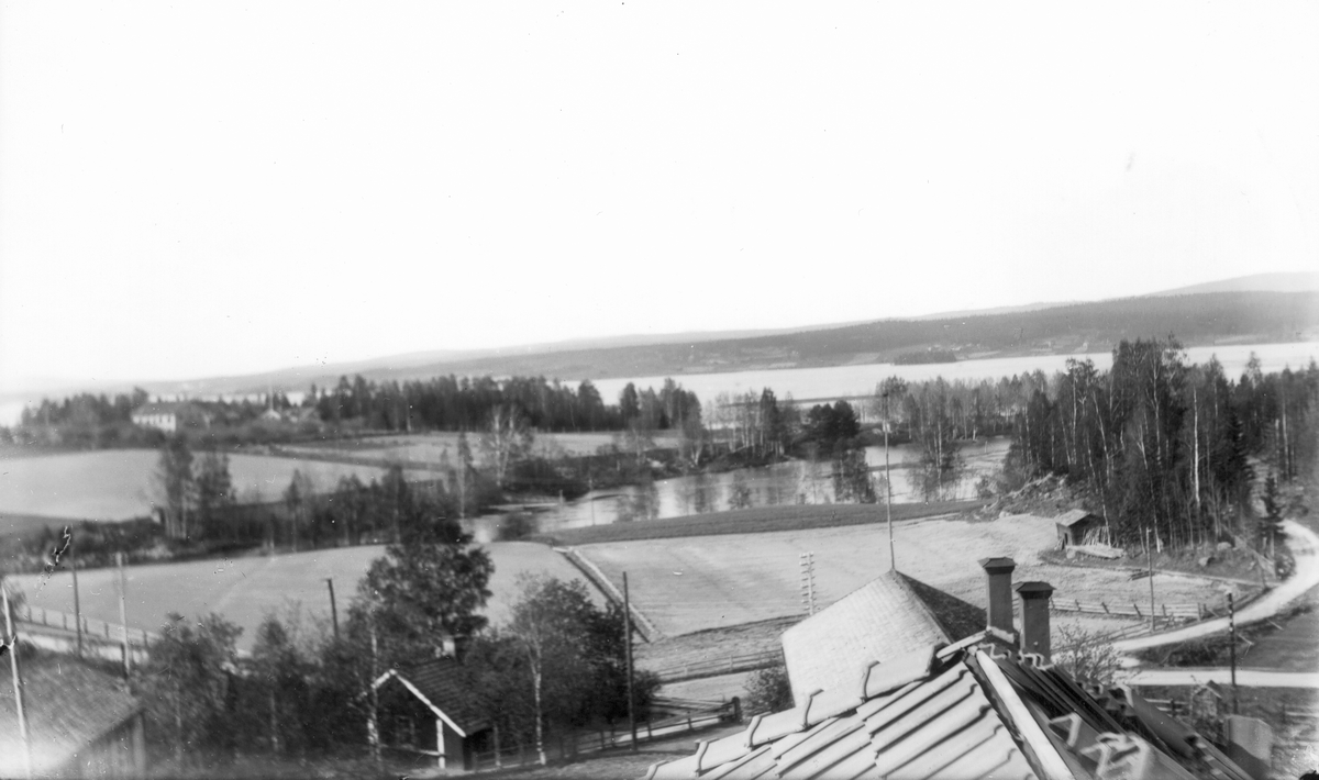 Vy tagen från taket av nya skolan i Voxsätter. Till vänster banvaktstugan, till höger vägen över "Hammarn".