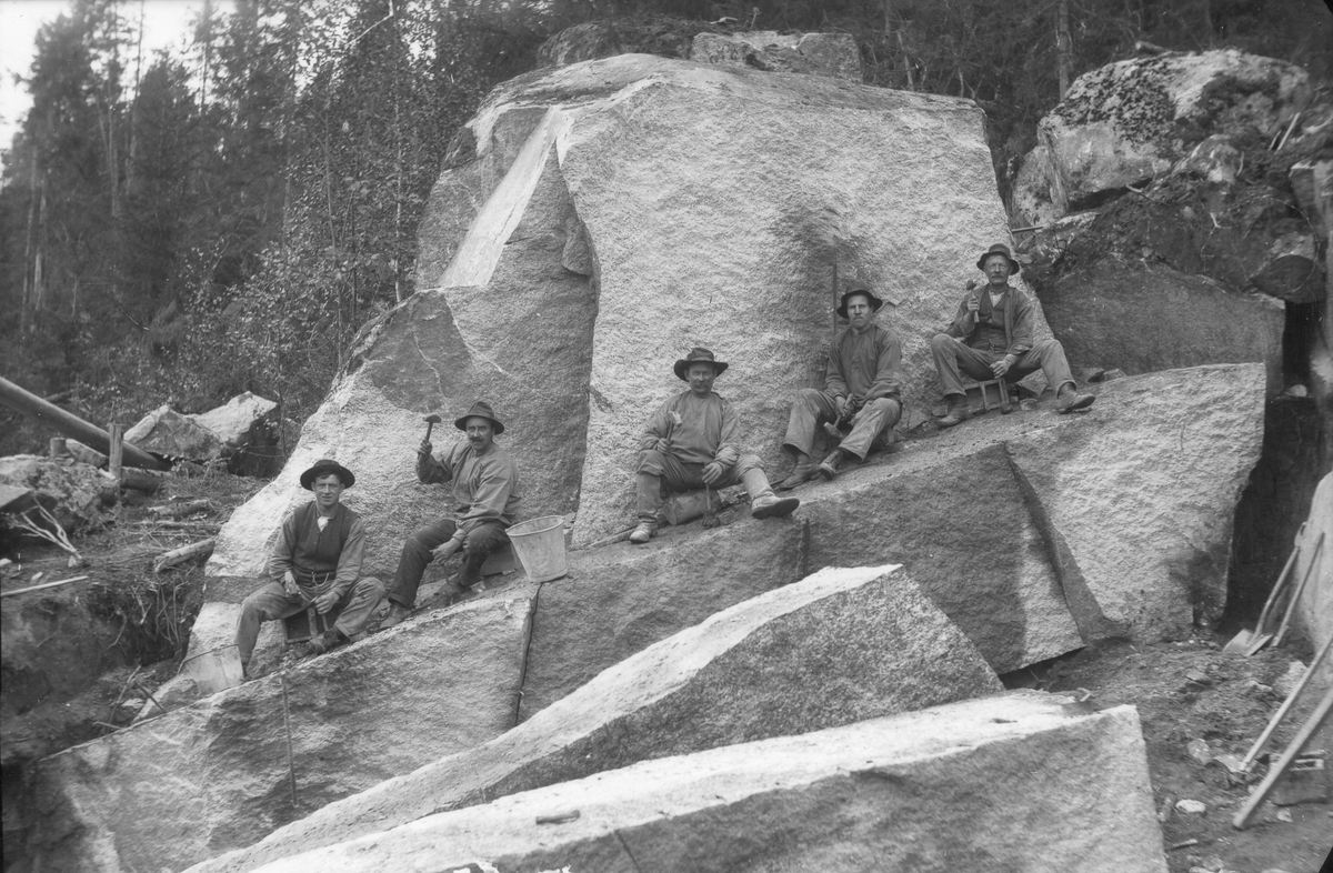 Stenbrott på Voxsätter 4:30, strax sydväst om Prästängestjärn. Stenarna användes vid brobygget över Voxna älv, klar 1917. Foto 1916.