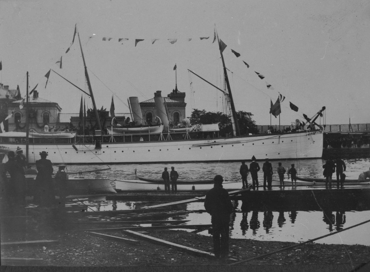 I Gefle hamn, "Drott" vid kunga och kejsarbesöket.