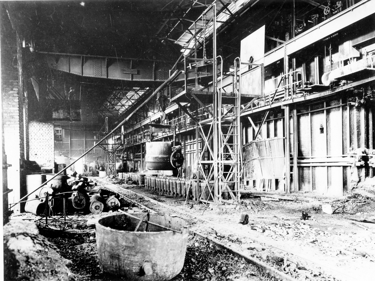 Forsbacka jernverk. Interiör från martinverket. Foto: Carl Larsson, 1920-talets början.