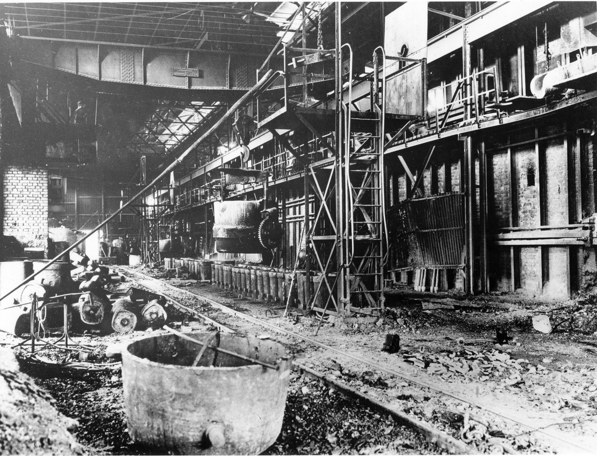 Forsbacka jernverk. Interiör från martinverket. Foto: Carl Larsson, 1920-talets början.