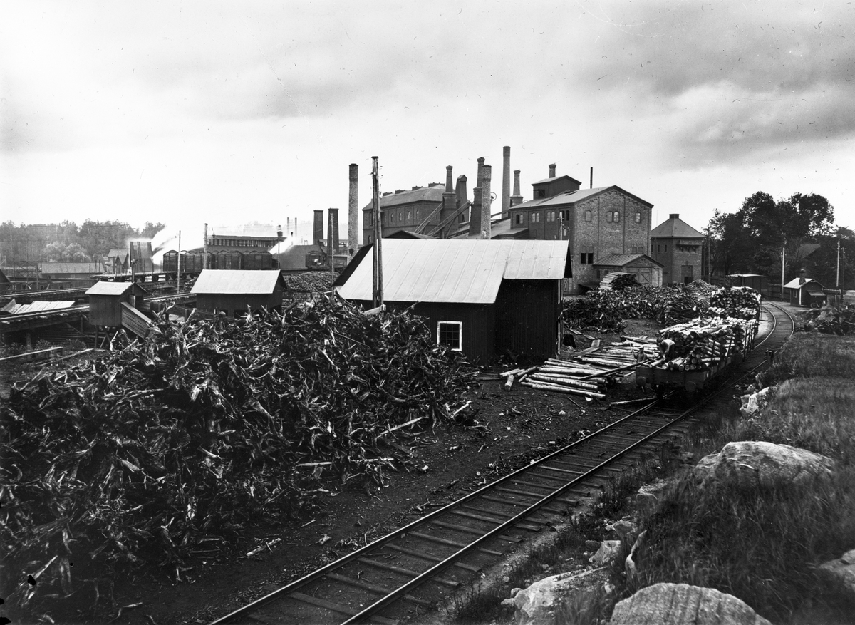 Forsbacka jernverk. Vedtugg och stubbupplag. Foto: Carl Larsson, 1920-talets början.
