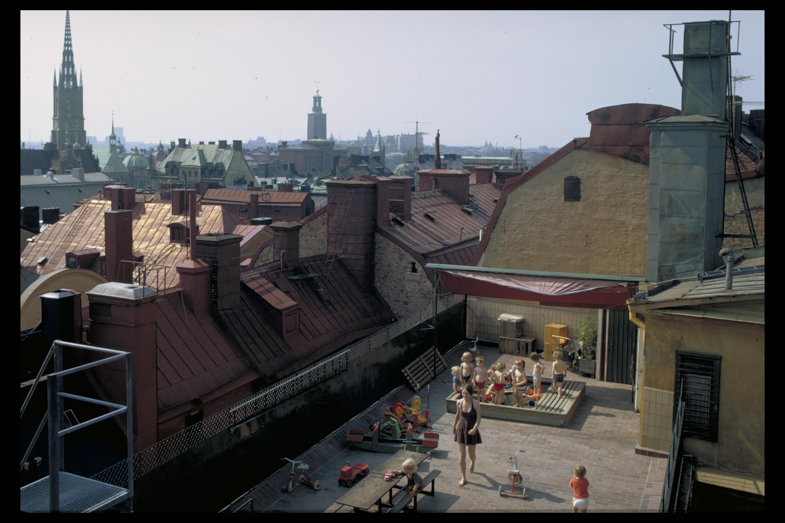 Gamla stan, lekplats ovanför Skomakargatan. Bilden troligen från början av 1970-talet.