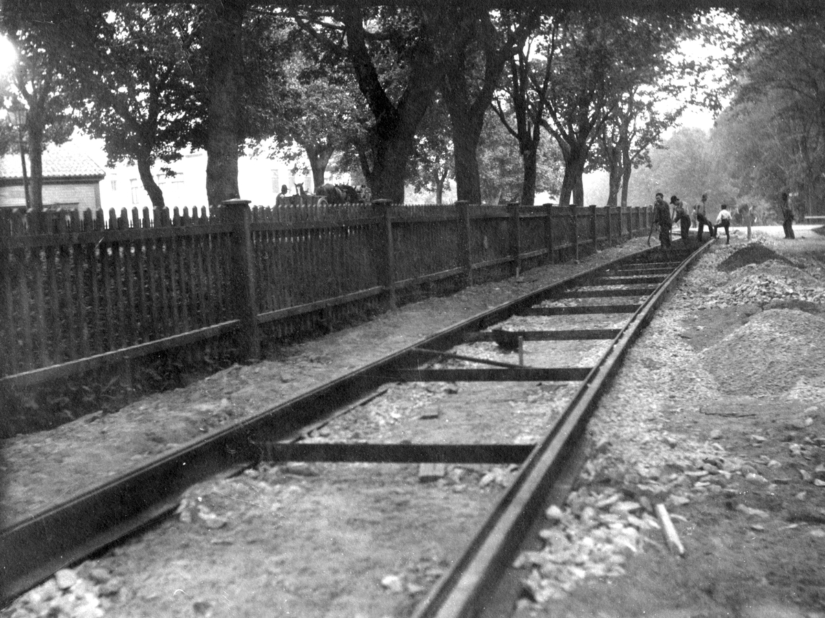 Spår vid Stadsträdgården före mötesspåret till Västra Vägen och Engelbrektsgatan