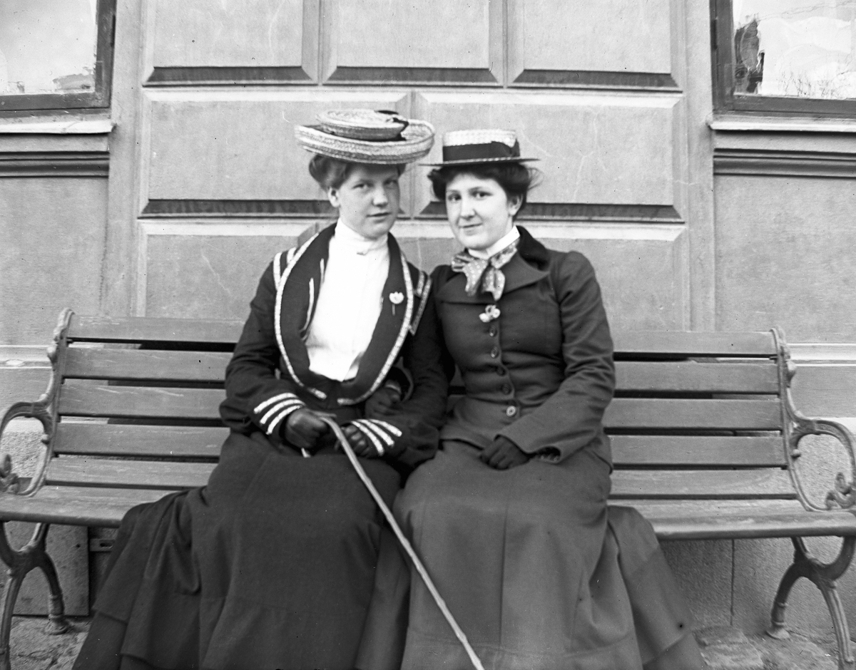 Titel: Två kvinnor sitter på en bänk