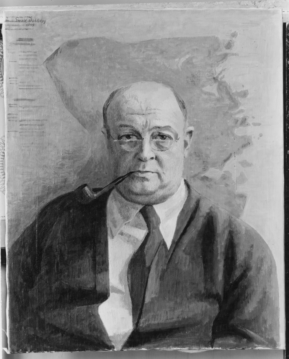 Fotografi av Larsson, Gävle på målat porträtt från 1949. Konstnär: Evald Dahlskog.