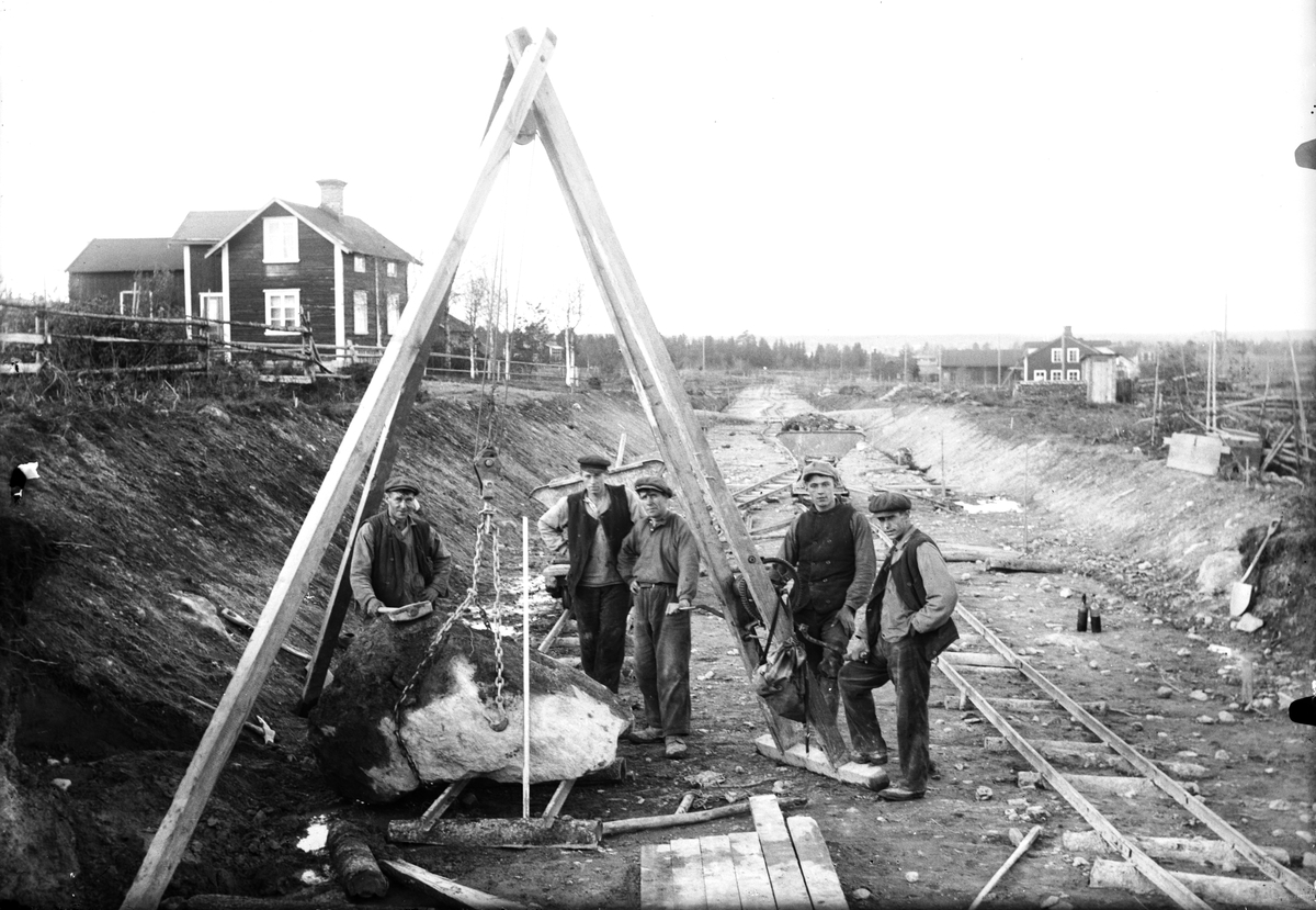 Rallare bygger ostkustbanan vid Rån.