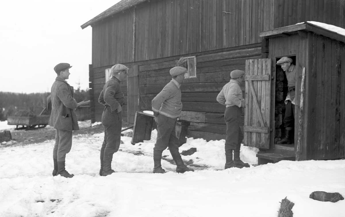 Kö till "hemlighuset" efter avslutad arbetsdag i fäbon