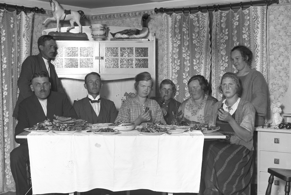 Hemma hos Karl Löv (sittandes till vänster), Wästra Hästbo