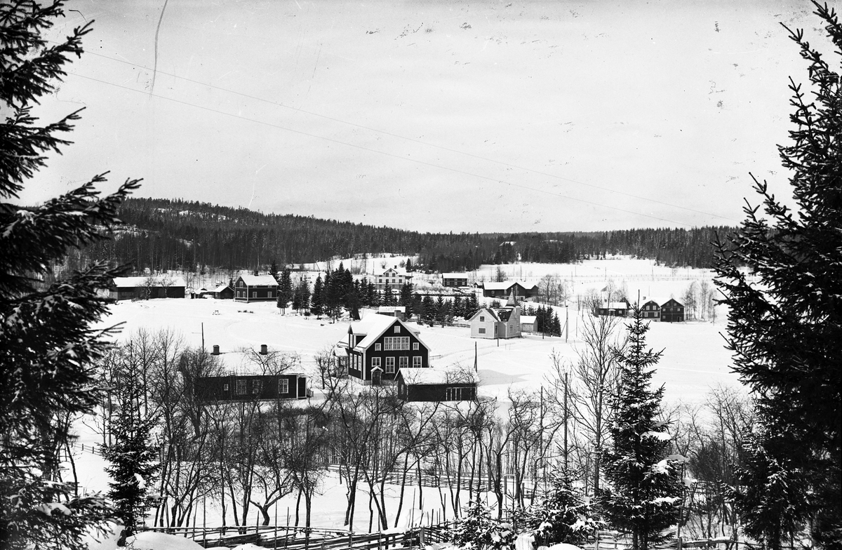 Baghyttans gamla och nya skola med Missionshuset och Granbacken bakom