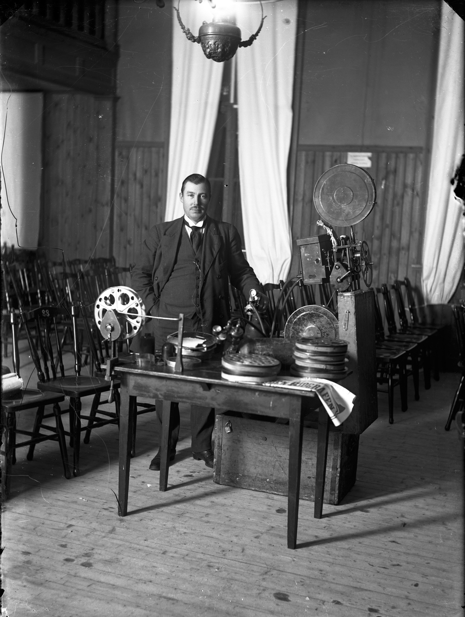 Man vid filmprojektor.
