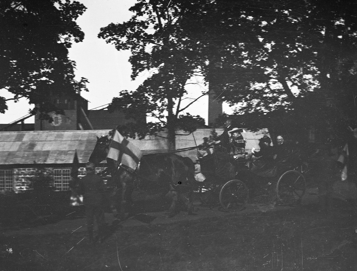 Häst och vagn utanför Gammelstilla bruk, Torsåker, före 1915.