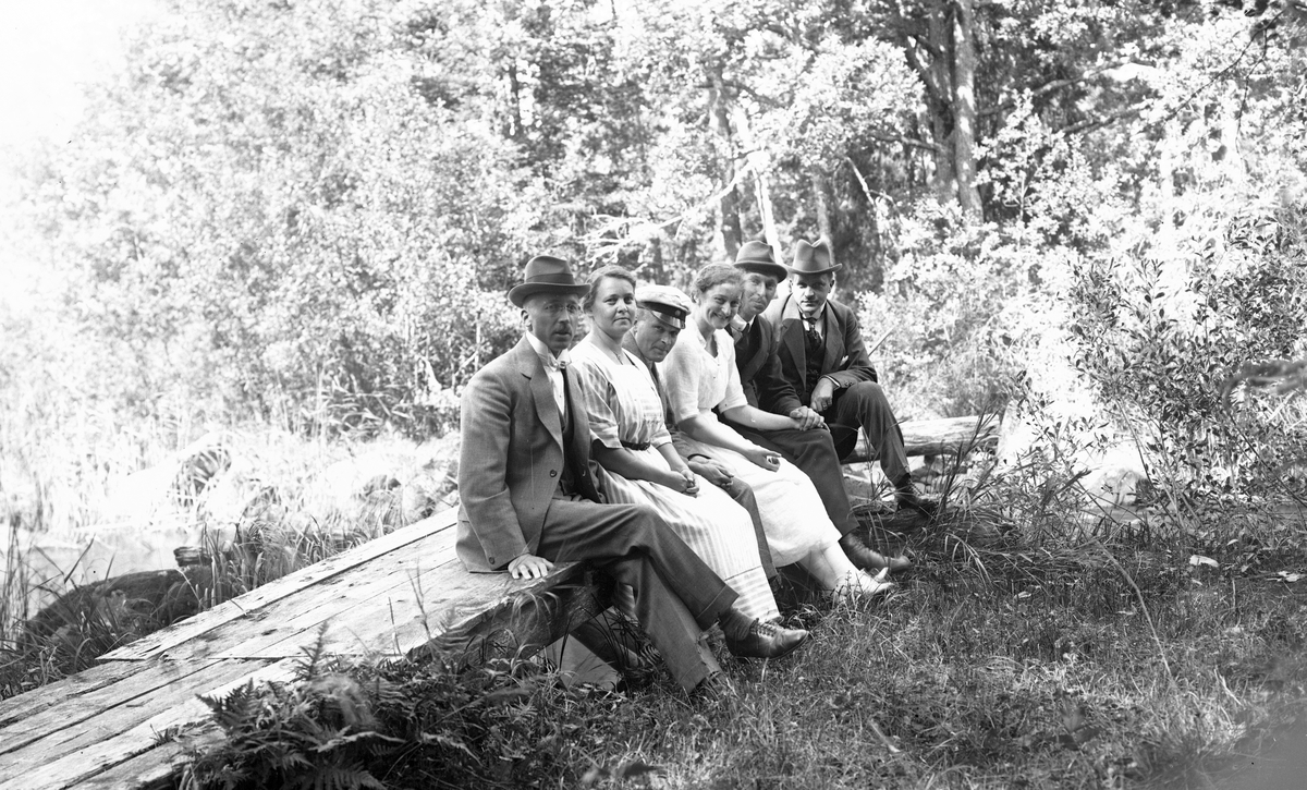 Män och kvinnor. Till vänster Helmer Norling, i Fors, Torsåker.