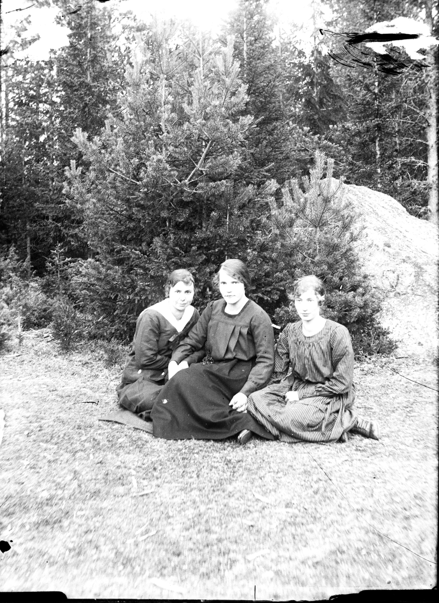 Kvinnan i mitten är Ida Myhrberg, Annefors, övriga okända.