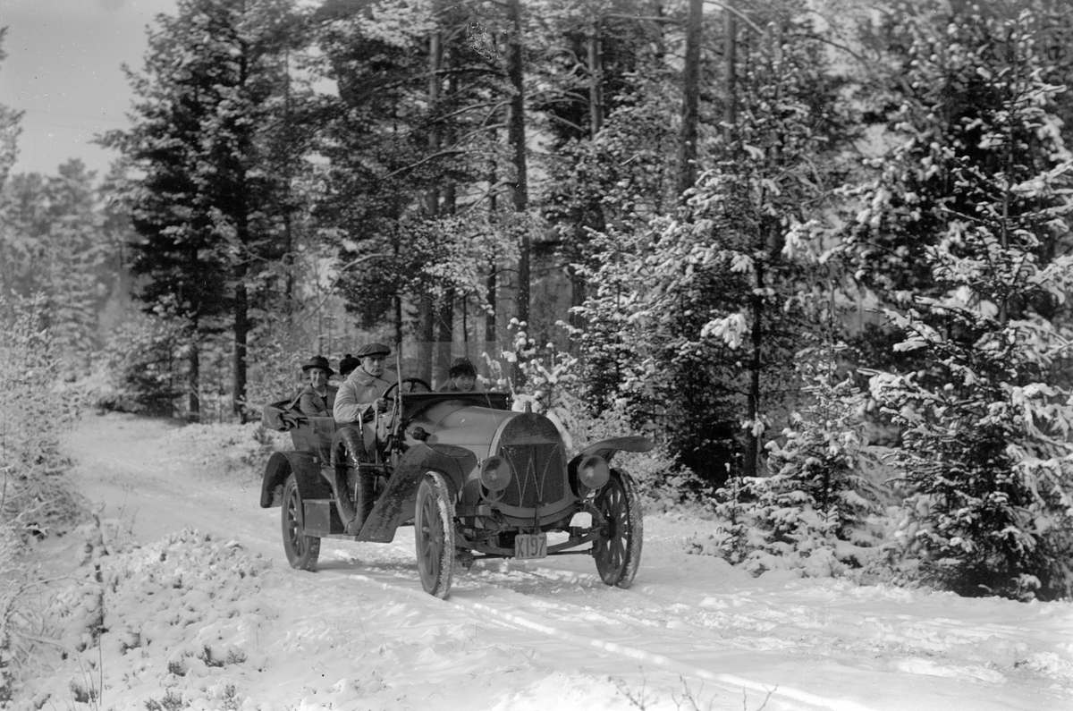 Josef Eriksson vid ratten i sin "Winghoffen", köptes den 12 maj 1920, såldes 5 juli 1921