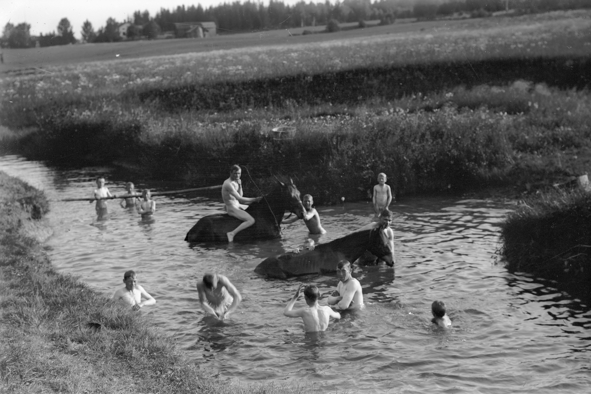 Gemensamhetsbad efter dagens slit. Badplatsen väster om "Erik-Lars", W. Hästbo