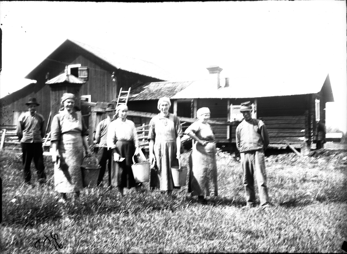 Från höger Erik Brosten och hustrun Anna. Den timrade delen av ladugården står kvar fortfarande.