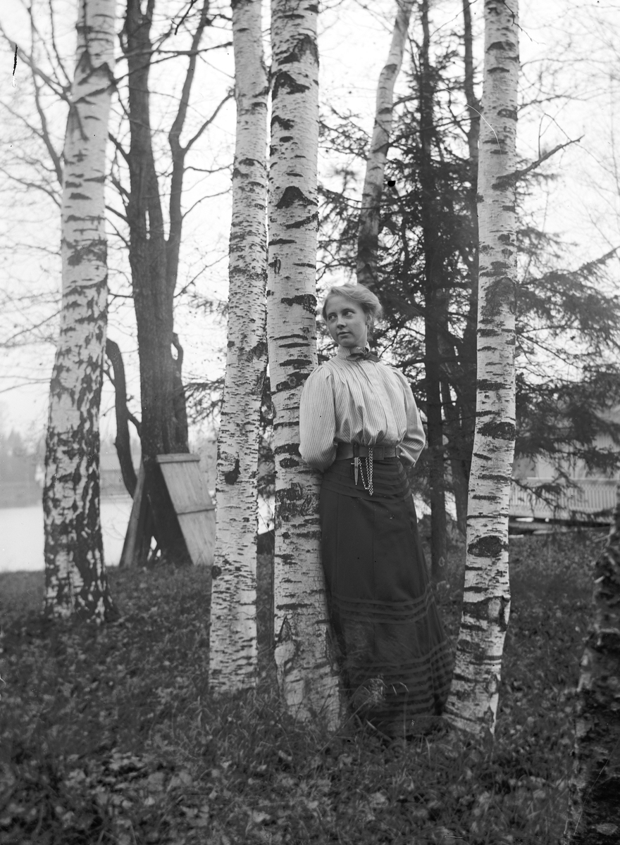 Flicka i björkhagen. Troligen Gammelstilla, Torsåker.