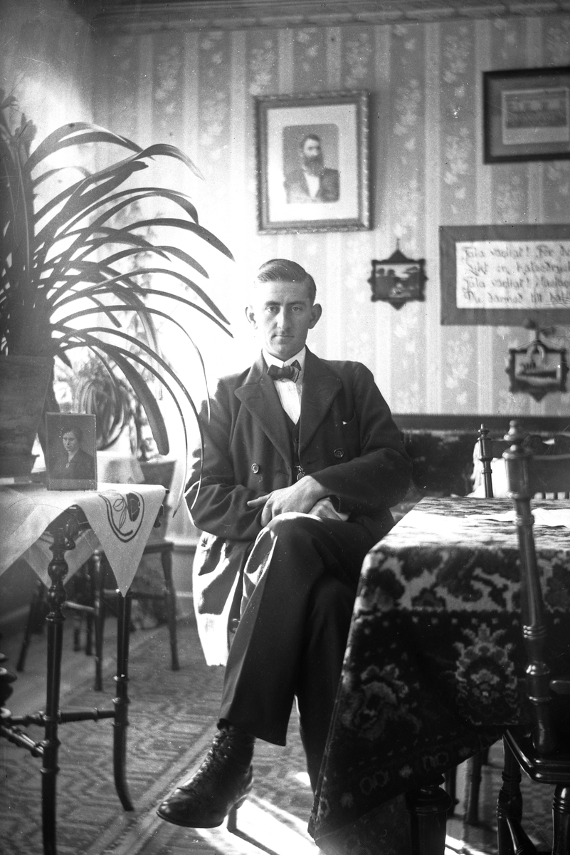 Man (Eventuellt Mästerlots Kristian Mauritz Andrè (1896-1972), Lilljungfrun. Född 13 november 1896 i Stugsund. Far Mästerlots Carl Fredrik och mor Karin Nordlöf. Mauritz antogs i Lotsverket år 1913. Fick full styrsedel år 1918 vid Lilljungfruns lotsplats och år 1941 vid Öregrunds lotsplats. År 1921 ordinarie lots vid Lilljungfruns Lotsplats, år 1930 platsombud och Mästerlots år 1937. Styrelseledamot i Lotsförbundet åren 1941-43. Distriktombudsman i Nedre Norra Distriktet (Hudiksvall-Lilljungfrun) åren 1942-44. Gift med Gerda Thunholm (född 1899). Barn Carl-Eric (född 1931) och Carin Martha Helena (född 1936).