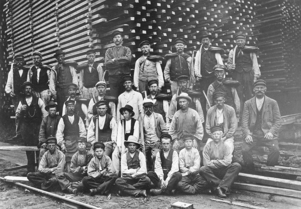 Brädgårds arbetare vid Hybosågen omkr. 1905