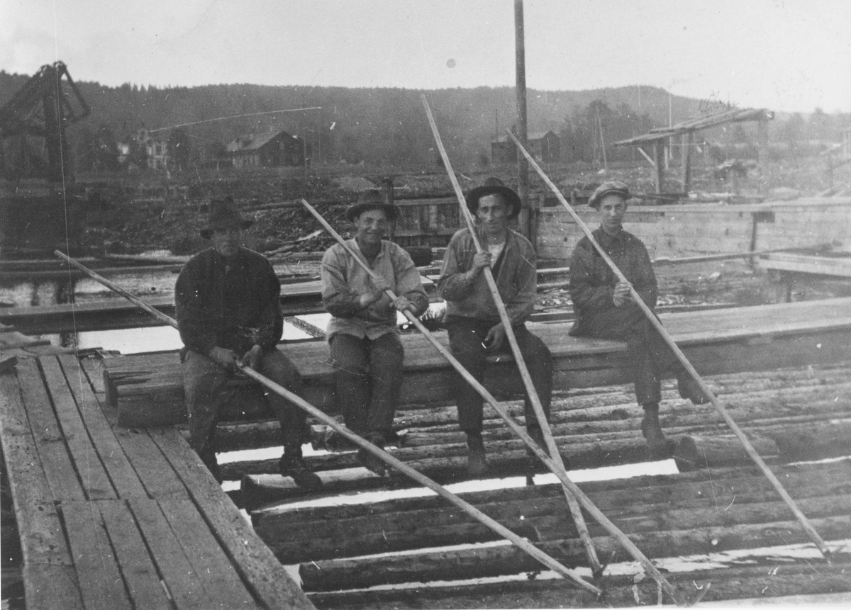 I bakgrunden synes den röda timmerbyggnaden vid Jo-Ors som senare blev Folketshus. Längre ner den stora timmerlogen som låg där Ruben Henriksson har sin tomt. På sidan synes den s.k. "Mara" vilken användes vidmed lagning av timmer från landvältorna.