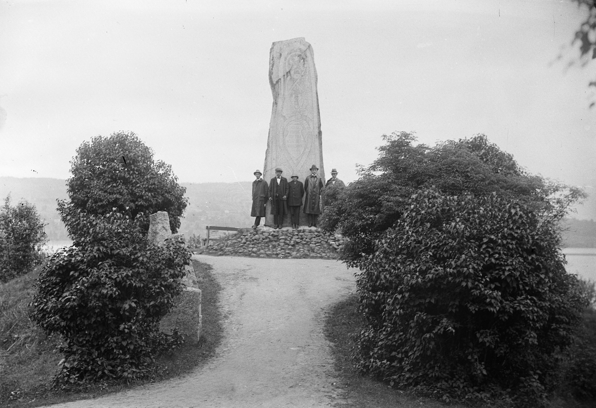 Vasamonumentet vid Siljans strand invigdes år1893. Stenen restes till minne över Gustav Vasa som här vid Rättviks kyrka första gången manade dalkarlarna till kamp mot danskarna. Året var 1520. På 12 mindre stenar finns namnen på några av de personer som hjälpte Gustav Vasa.