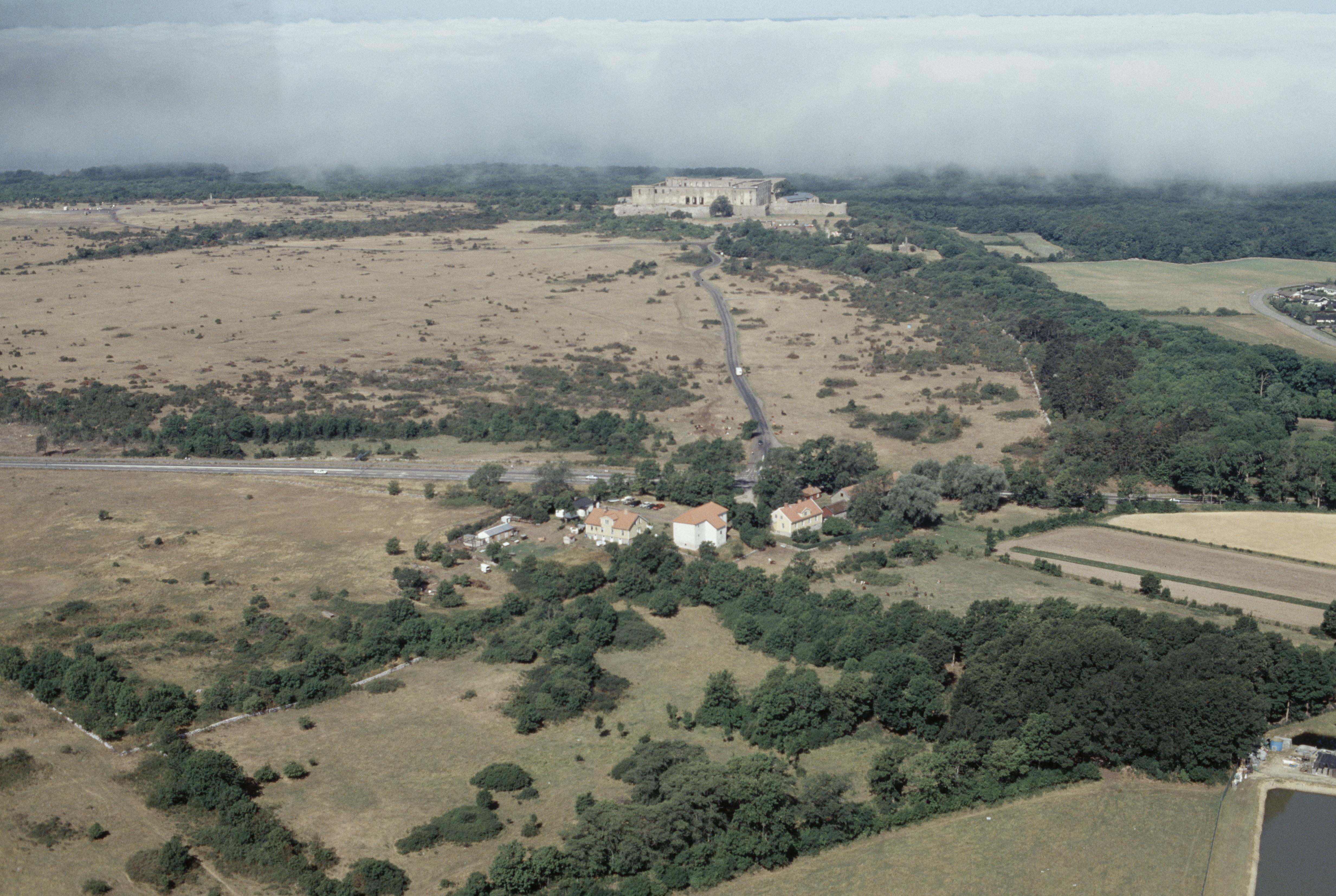 Vasahuset / Borgholms kungsgård. I bildens övre del Borgholms slottsruin RAÄnr Räpplinge 199:1 och Vasahuset. Bilden är tagen mot (väderstreck): VNV
