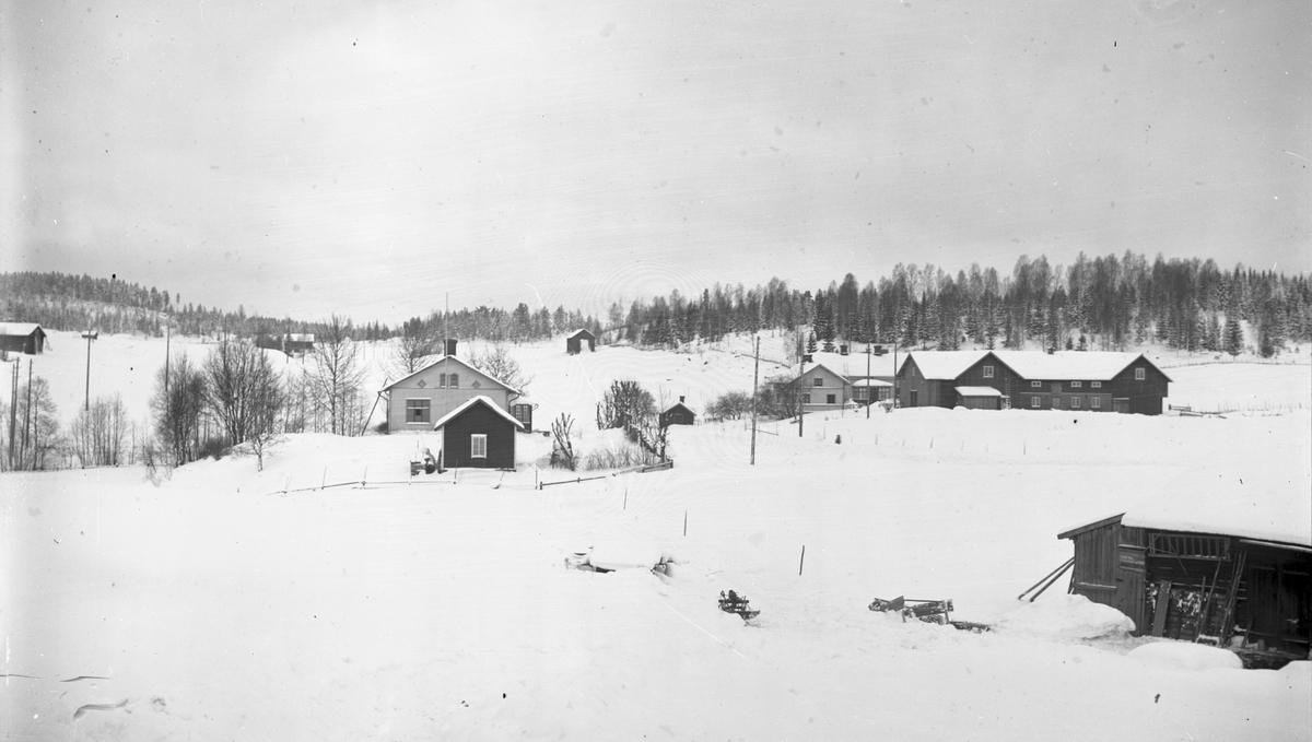 Axel Larssons gård Bagghyttan nr 5. Till vänster gamla skolan