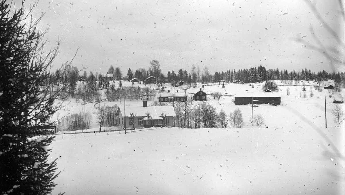 Tornbacken i Bagghyttan med gamla skolan i förgrunden