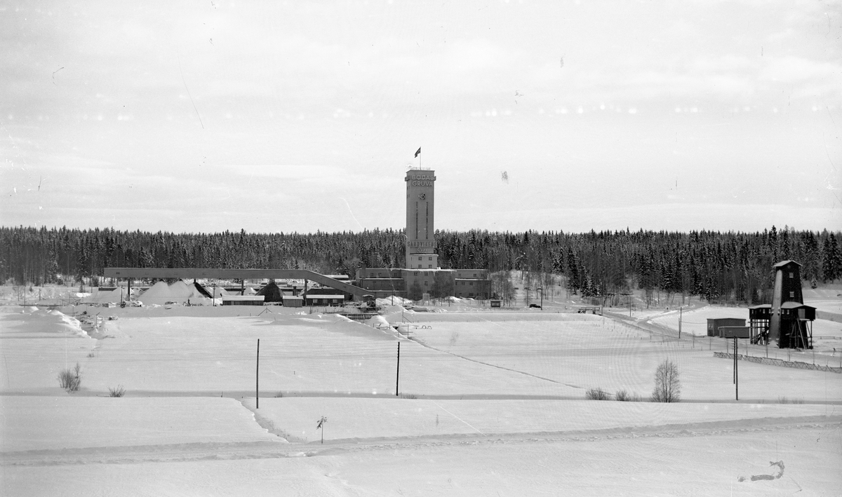 Bodås gruva byggd 1945. Kulcinterverket till vänster byggdes 1950-51
