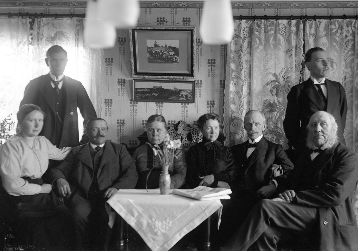 Sittande från vänster Olivia Pettersson, Berg. Josefs far Per Erik Eriksson, mor Anna Maria Larsson. Olivias mor Anna Greta Andersdotter, far Per Erik Pettersson, Berg. Och två okända. Mannen som står till vänster är Josef Eriksson