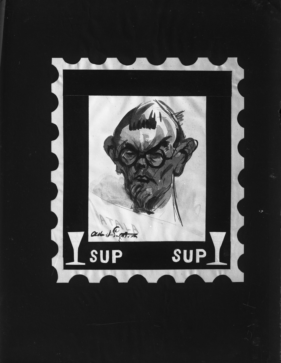 Gefle Filatelisällskap. Albert Engström - frimärke. Foto 1930-tal.