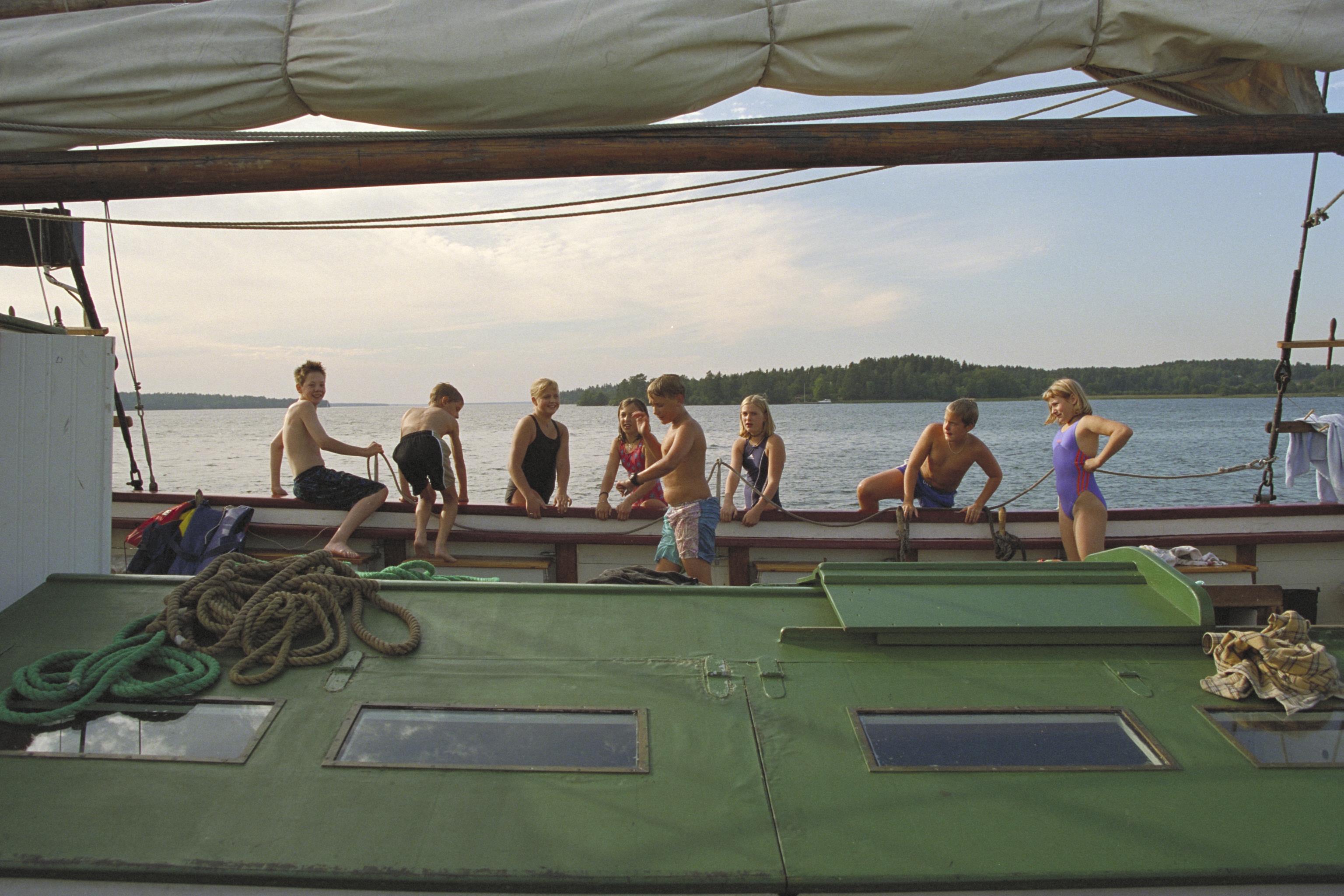 Skolklass på rundtur runt Mälaren.