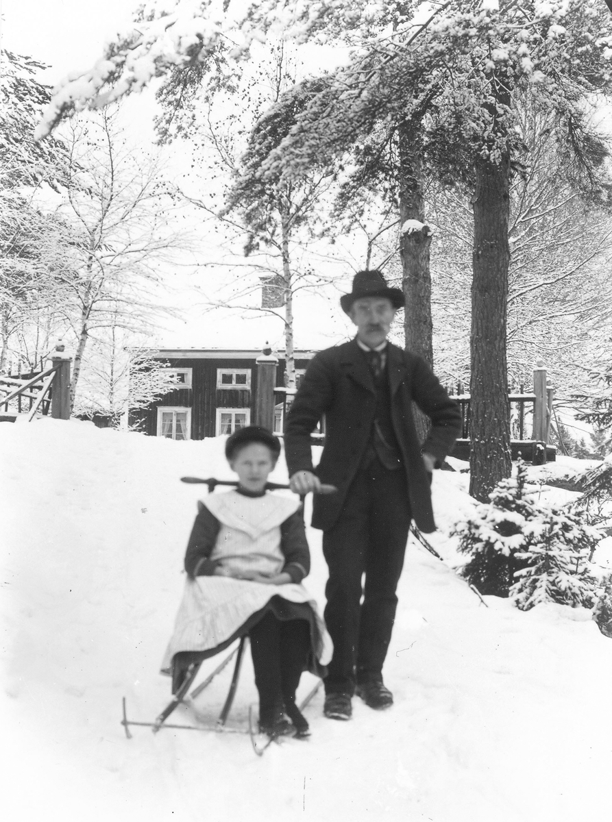 Fotografen Per Lindberg och hans dotter Elvira utanför gården "Berget" i Östansjö.