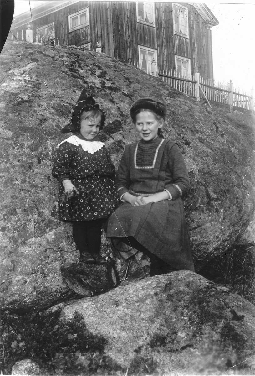 Fotot taget nedanför fotografens hem i Östansjö. Flickan till höger är Per Lindbergs dotter Elvira.