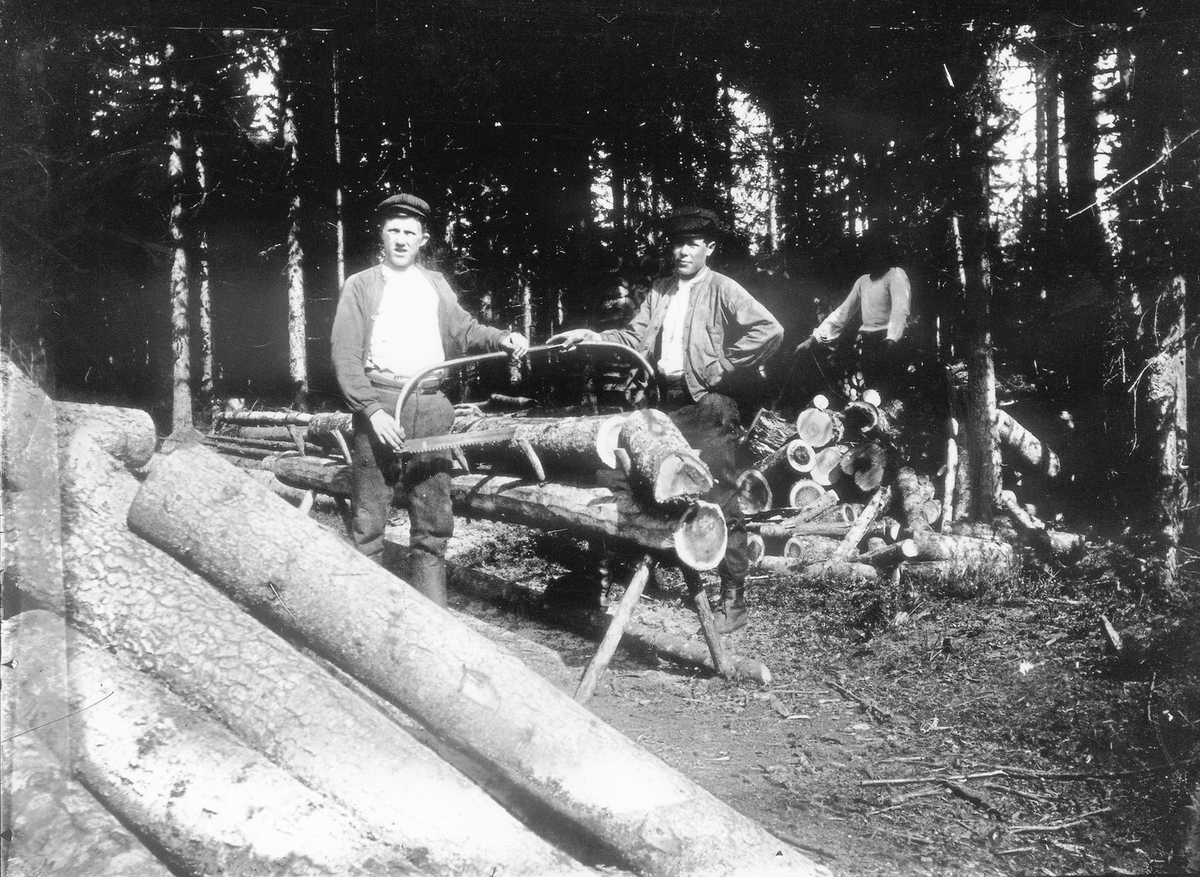 Mannen i mitten är Erik Jonsson, "Bagar-Erik". Övriga okända.