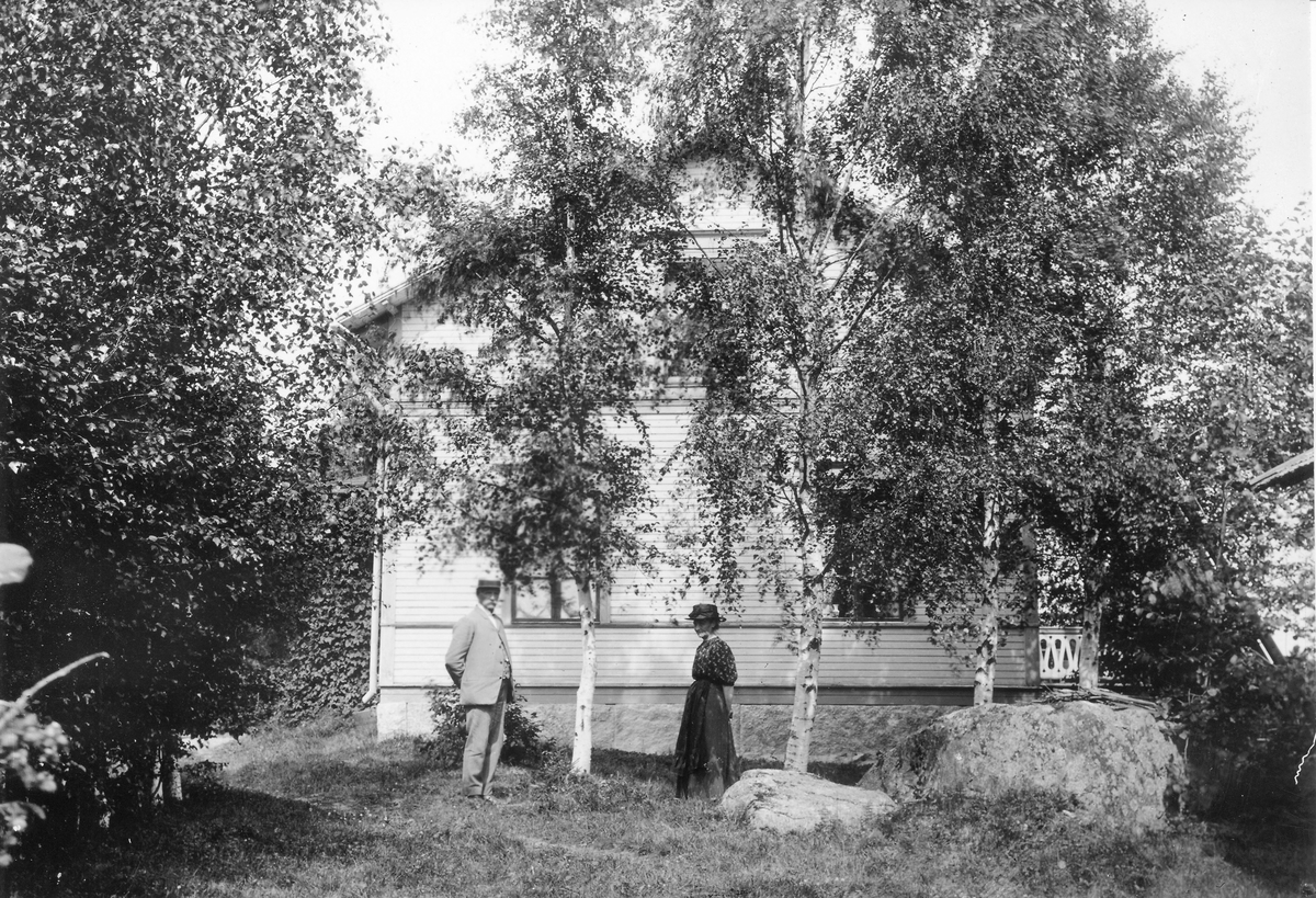 "Hertsells" i Herte. Per Hertsell står till vänster. Han läste till skollärare i Uppsala och gjorde bl a en karta över Bollnäs kommun. Per hade tre systrar, Karin kom till "Nylands", Brita till "Norrgårds" och Anna (?) till "Ol-Lars".