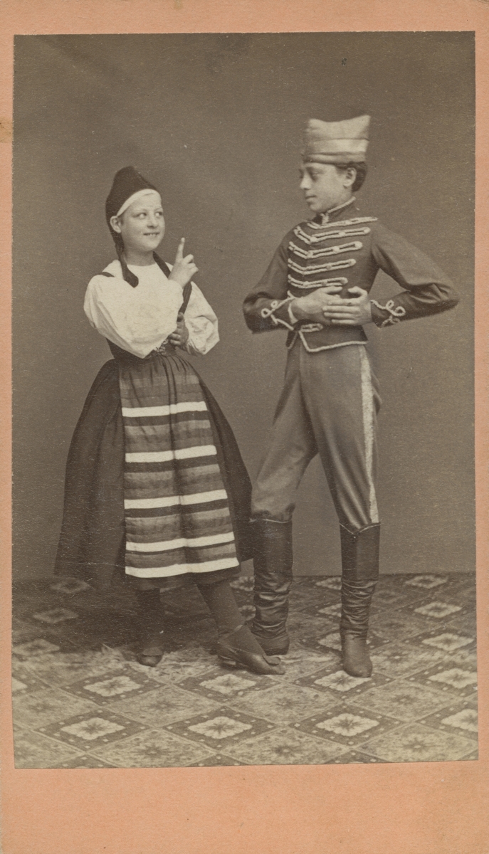 Ida Eckhéll. Pojke och flicka i folkdräkter, 1871.