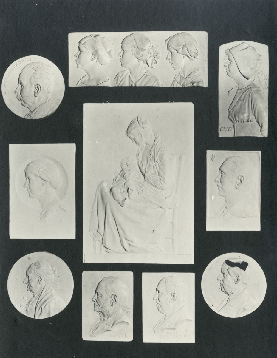 Skulpturer av John Runer. F. V. Schéele 1911. Stina, Karin och Helga Engwall 1910. Eve von Schéele 1911. Fru Ina Wijk 1918. Plakett kopia efter Charpentier 1913. Baron Louis de Geer 1916. Fru Ch. von Schéele 1897. Kontraktsprosten J. A Petri 1910. Godsägare Alb. Hagströmer 1911. Carl Runer (min far) 1897.