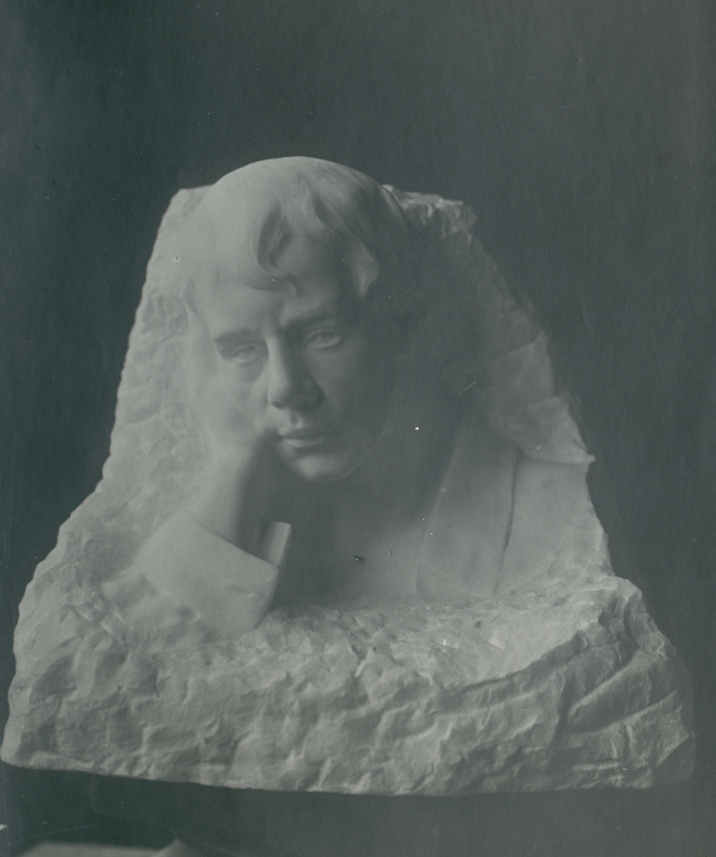 Skulptur av John Runer. "Grubbel" i marmor 1914. 40 x 42.