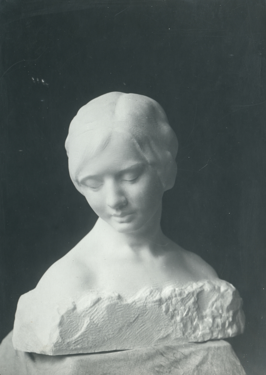 Titel: Skulptur av John Runer. "Sentas hufvud" i marmor 1915. 34 x 34.